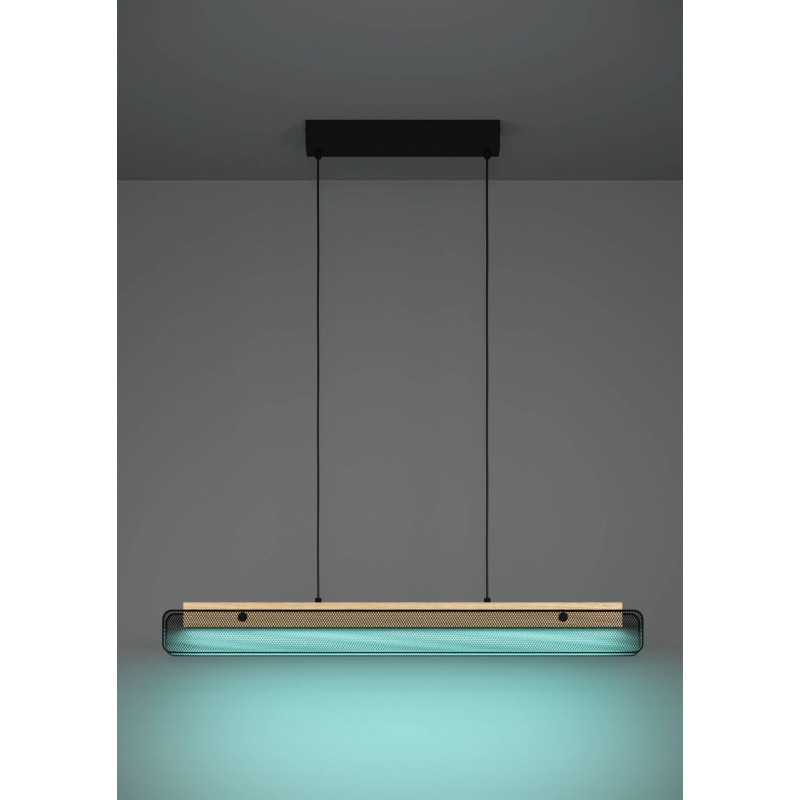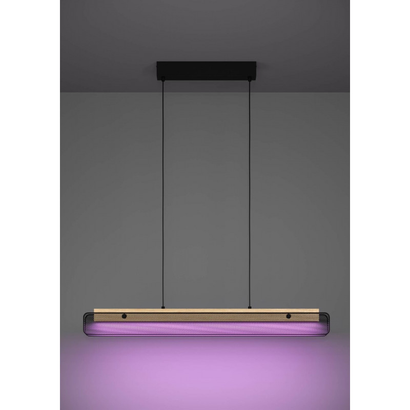 Combinando la elegancia del diseño industrial con el uso de alta tecnología, la lámpara colgante LED KOKOMO-Z respira una nueva dimensión con la iluminación inteligente de la famosa marca EGLO. Esta revolucionaria iluminación, además de su sencilla función de iluminación, se integra perfectamente en varios estilos de interiores gracias a su sofisticada estética y funciones avanzadas.La encarnación de la perfección, KOKOMO-Z está decorada con una elegante mezcla de madera suspendida y madera ácida, combinando luminarias con una mezcla sensual mezclada con una esencia metálica. Las hojas de acero reforzado en negro tienen un atractivo industrial y están recubiertas con una refinada superficie luminosa de plástico blanco mate. Mientras el negro aporta un toque de elegancia a la estructura del artículo, el blanco mate arroja una luz agradable y encantadora, creando un ambiente agradable y sereno.